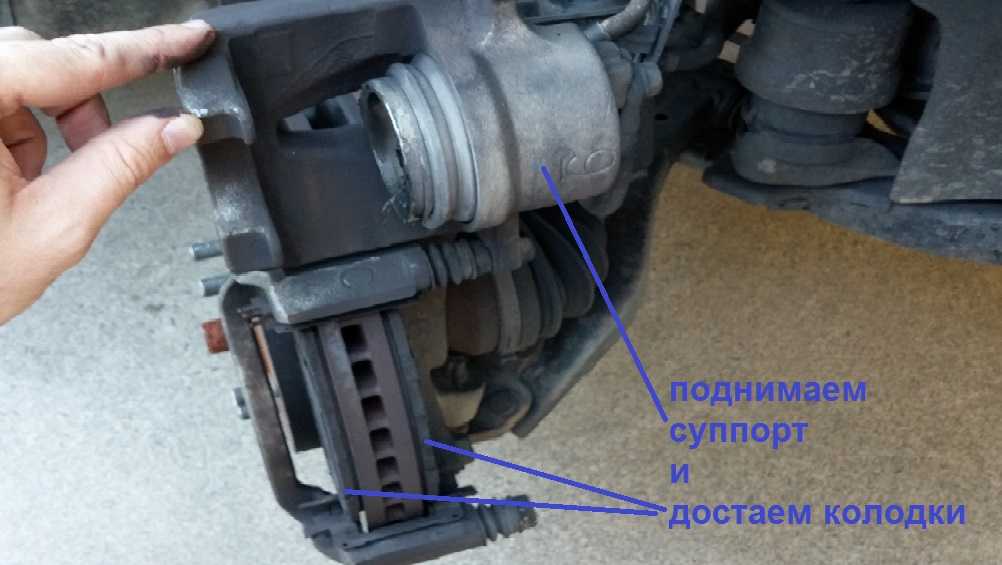 откидываем корпус суппорта, получая доступ к колодкам (если это не удается сделать, то придется открутить второй болт)