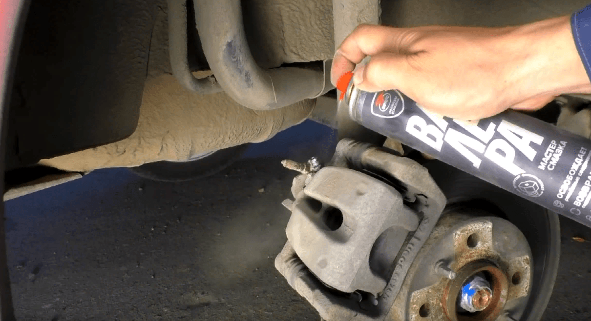 Зачищаем, как следует, штуцер прокачки, снимаем колпачок, брызгаем мощную проникающую смазку.