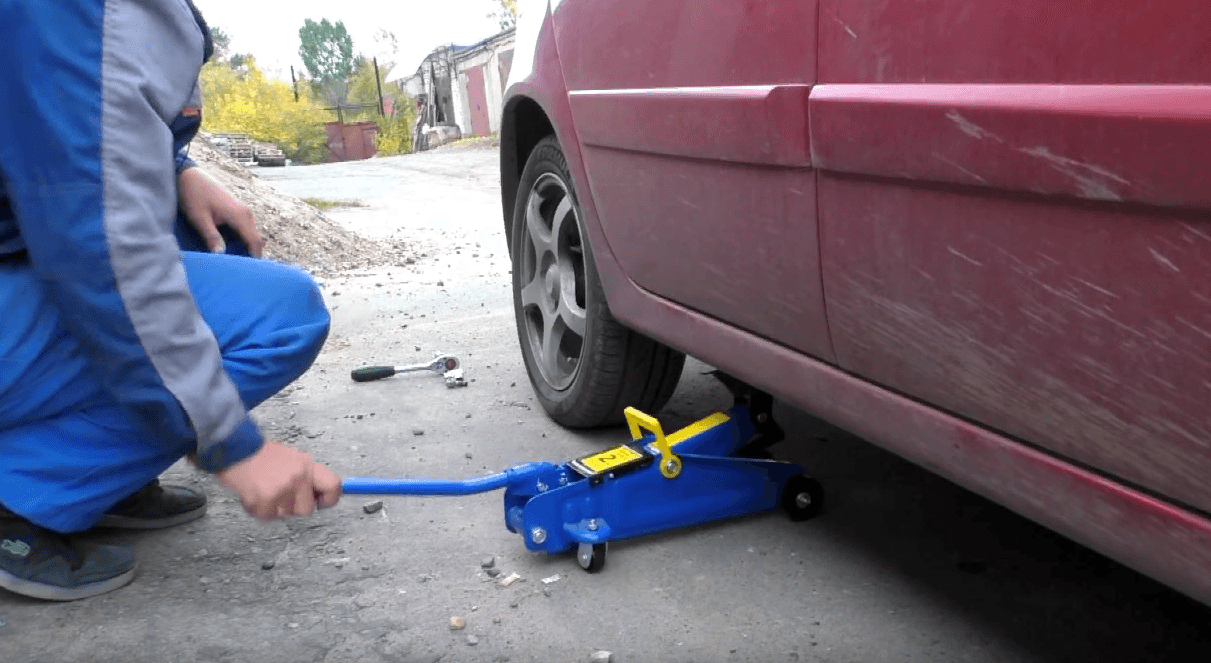 Данную работу лучше делать на смотровой яме или подъемнике. Если такой возможности нет, можно обойтись снятием колес.