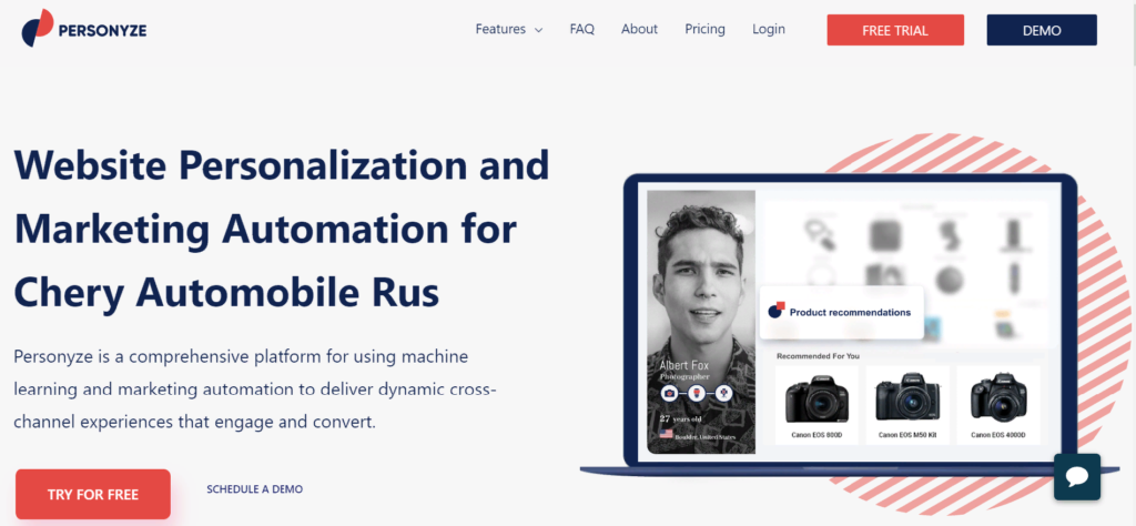 Это российский сервис для персонализации. Программа собирает базы контактов и анализирует поведение каждого посетителя сайта, предоставляет подробную статистическую и аналитическую информацию о продажах и предлагает поддержку аккаунт-менеджера.
