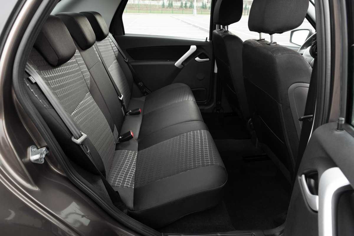 Сзади машина имеет аккуратную дверь багажника на газовых упорах и небольшой пластиковый бампер с вырезом под номерной знак. Задняя оптика вытянута в горизонтальном положении. Такая же имеется на отечественной «Калине». Уже в базовой комплектации здесь есть подогрев заднего стекла и дополнительный стоп-сигнал сверху. В целом задняя часть не отличается особыми формами. Это максимально простой и доступный автомобиль.