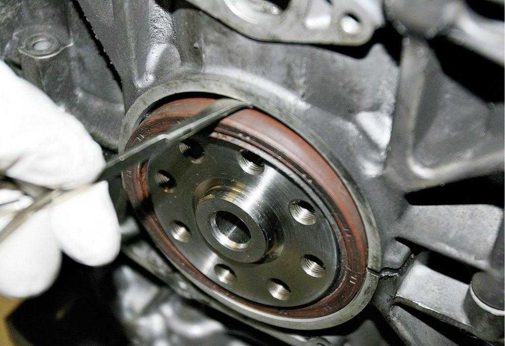 Последовательность действий при замене переднего и заднего сальника несколько различается. Это вызвано тем, что передний сальник можно заменить непосредственно на самом двигателе. Добраться до заднего сальника обычно труднее.