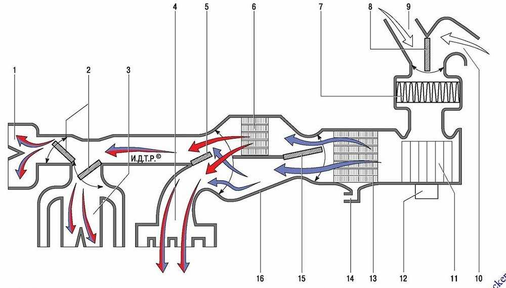 На «Шевроле-Круз» устанавливается система отопления жидкостного типа. То есть охлаждение осуществляется за счёт передачи тепла от охлаждающей жидкости (ОЖ). Радиатор охлаждения соединён с радиатором печки посредством двух шлангов. Они проведены через моторный отсек к области под центральной частью передней панели, где находится климатический блок, включающий в себя печку и кондиционер.