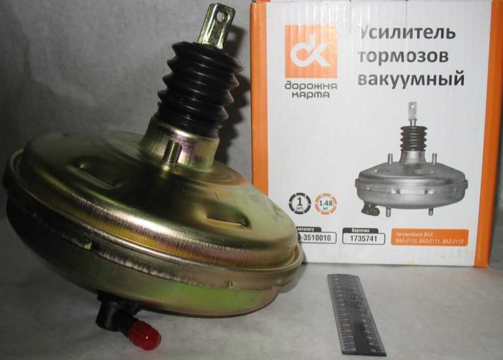 Вакуумный усилитель собран в герметичном корпусе, разделенном на две камеры эластичной мембраной. Мембрана механически связана с тормозной педалью. Шток мембраны упирается в главный тормозной цилиндр.