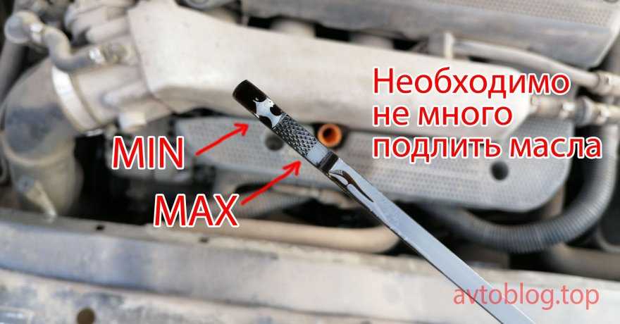 - Если масло ниже уровня — долить через заливную горловину. Затем повторно проверить через несколько минут.