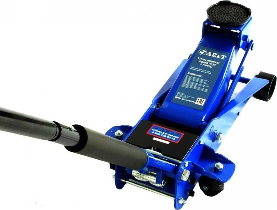 В конструкции предусмотрен защитный клапан от перегрузки, съемная рукоятка. Хорошее качество колес делает автодомкрат маневренным. Для переноски предусмотрена ручка. По отзывам пользователей, отличается высокой скоростью подъема.