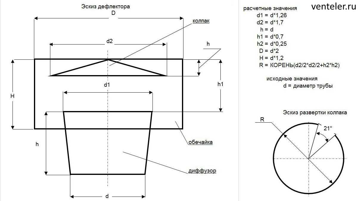 Грибок (дефлектор) на трубу дымохода своими руками – чертежи и формула расчета