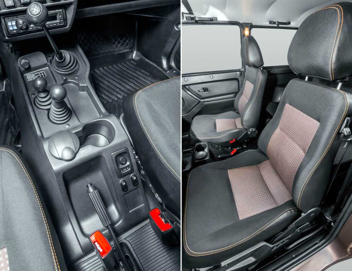 В секции габаритов будут ставиться двухнитиевые лампы, одна из нитей будет делать функцию дневных ходовых огней. По текущему году – мы поменяем форсунки омывателя ветрового стекла с одинарных на сдвоенные, как на «Приоре». На будущий год поменяем решётку радиатора», — добавил модернизации процесса и руководитель конструкции Lada 4×4 Юрий Акимов.