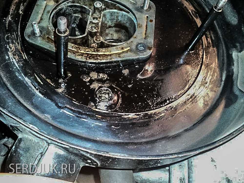 У меня проблема с загрязнением карбюратора была очень большим геморроем, так как белая пена всегда была в кастрюле, и соответственно масло также, очень неприятно когда машина находится в таком состоянии. Фото этого ужаса можете посмотреть ниже. Соответственно от подобного работа двигателя идеальной или хотя бы стабильной быть не может.
