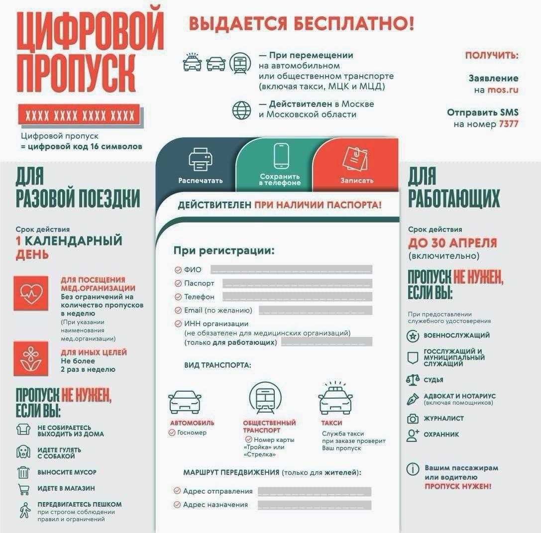 С 15 апреля в Москве принимают дополнительные меры — теперь передвигаться на личном и общественном транспорте можно, но только получив специальный пропуск — выдается 3 вида пропусков.