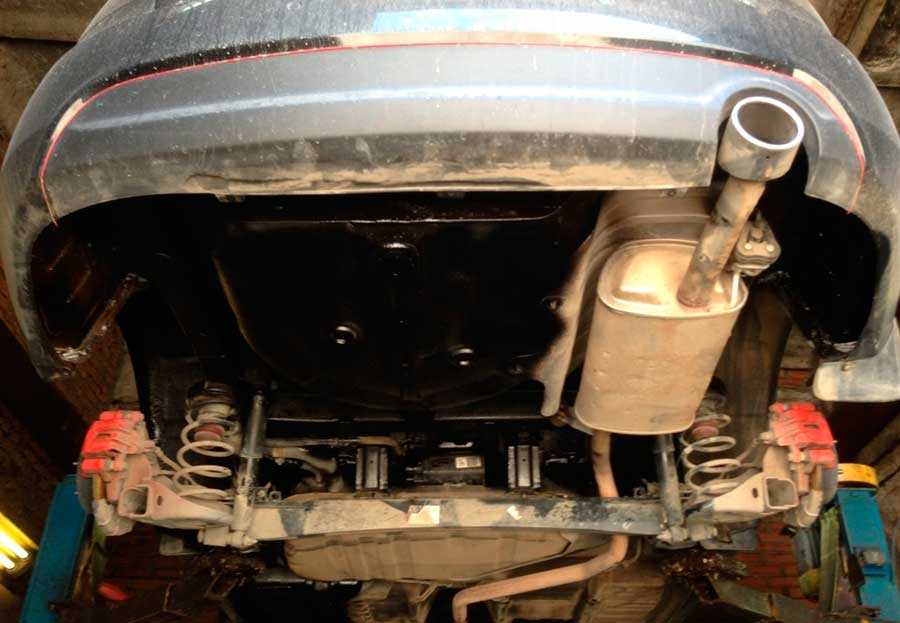 Днище машины, поверхности колесных арок, выхлопная труба, глушитель, колесные ниши, пороги.