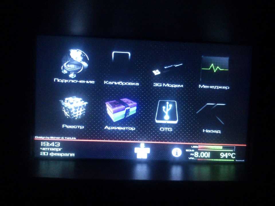 Впечатления.Весьма добротная вещь это альтернативное меню, но есть пара НО. Начну с плюсов.+Удобные большие кнопки, после калибровки промазать трудно.+расширенный функционал, можно сворачивать приложения и запускать параллельно что-то еще (главное не переусердстовать ОЗУ все ж маловато).+работает радио+навигация+быстрый переход к штатной оболочке+ много чего еще и главный плюс активная доработка и дополнение.Минусы:— Один из самых критичных не работают управляющие кнопки, вернее не все работают. В дороге не глядя не натыкаешься в экран.— странно работает громкость и эквалайзер. (пару минут надо посидеть и разобраться)— в в радио нет запоминания станций, но они ищутся очень быстро, не значительный недостаток =) раньше радио вообще не работало.