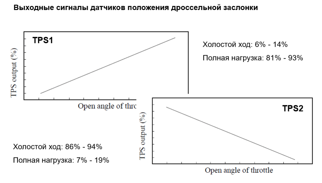 То есть, очевидно, что в первом случае при работе двигателя в режиме холостого хода правильные значения положения ДЗ будут равны нулю! Так как воздух идёт не через дроссельную заслонку, а через специальный канал РХХ.