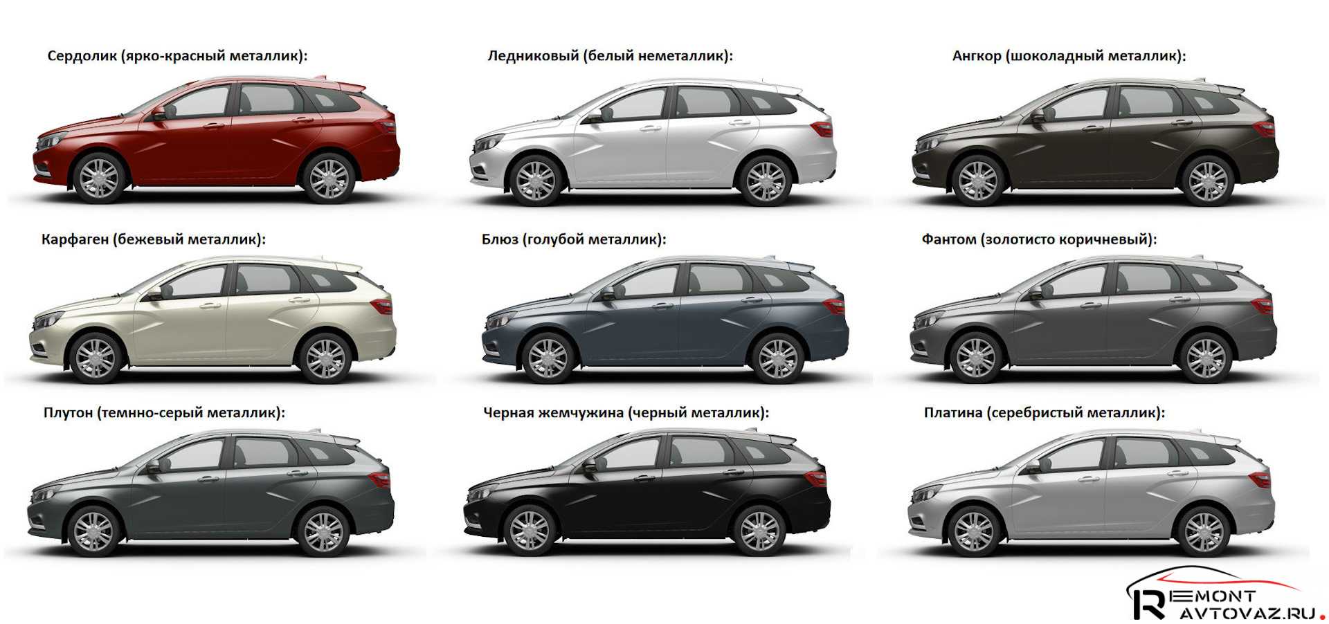 Сегодня производитель предлагает следующие цветовые решения для моделей LADA Vesta:
