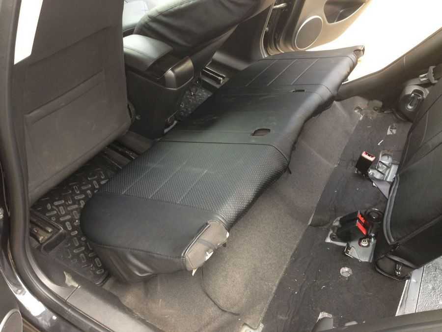 Сняв всё и одев чехлы, прикрутил все фиксаторы назад и пошёл ставить сиденья уже с чехлами и довольным выражением лица, заодно убрав всю грязь под сидушками. Запихивал сиденья уже «буквой Г», лень было раскладывать. Поставил, закрутил и вот что получилось.