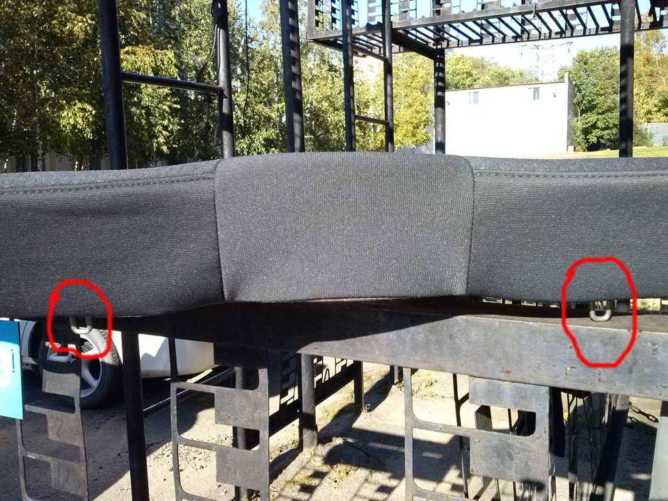 Возникла, значит, у меня необходимость разобрать задний ряд сидений, так как пролил на них много воды, и пришлось их сушить. Решил выложить процесс разборки — сборки заднего ряда сидений, в лицах может, кому пригодится. 1. Опускаем спинки сидений привычным способом и отогнув липучку выкручиваем два болта на одной, два болта на другой спинке;