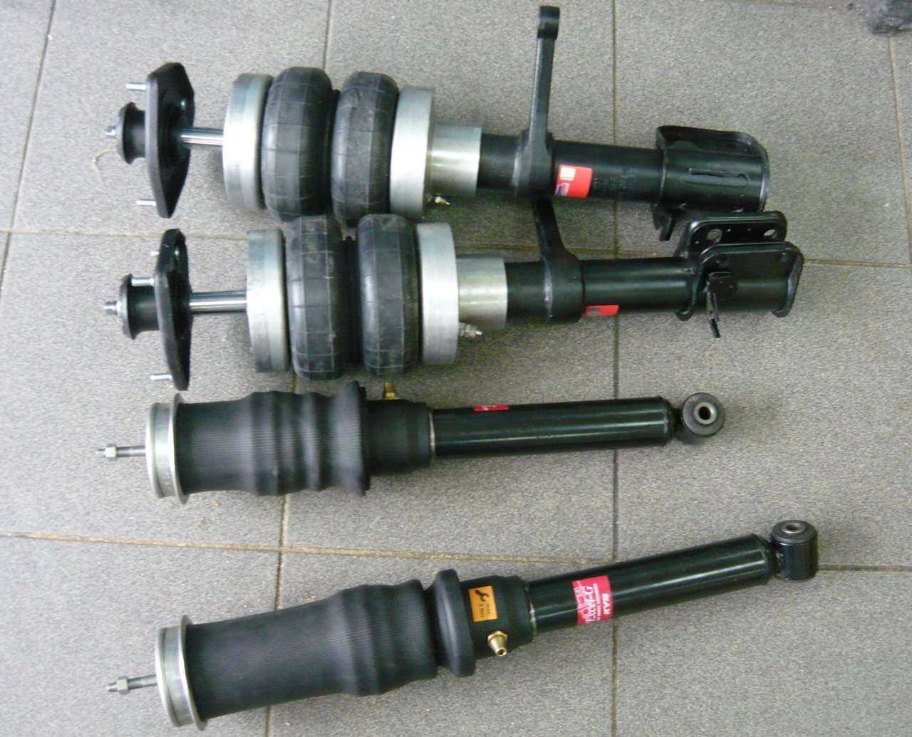 - Тюнинг автомобиля путем установки пневмоподвески. Позволяет менять жесткость подвески и клиренс непосредственно во время движения. Надежность пневмо во многом зависит от правильности монтажа. Долговечность ниже чем у штатной подвески.