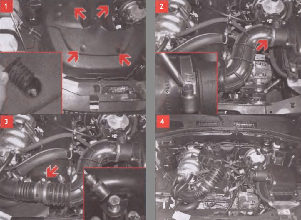 Затем торцевым ключом на 10 нужно открутить винт удерживающий воздушный фильтр. После этого снимаем воздуховод с корпуса фильтра. На этом этап подготовки можно считать завершенным.