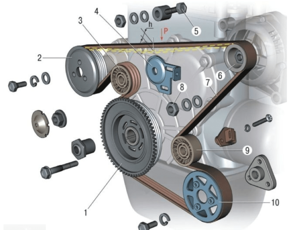 Рекомендуется покупать ремни известных брендов, качество которых было проверено временем. Схема расположения приводных механизмов показана на фото.