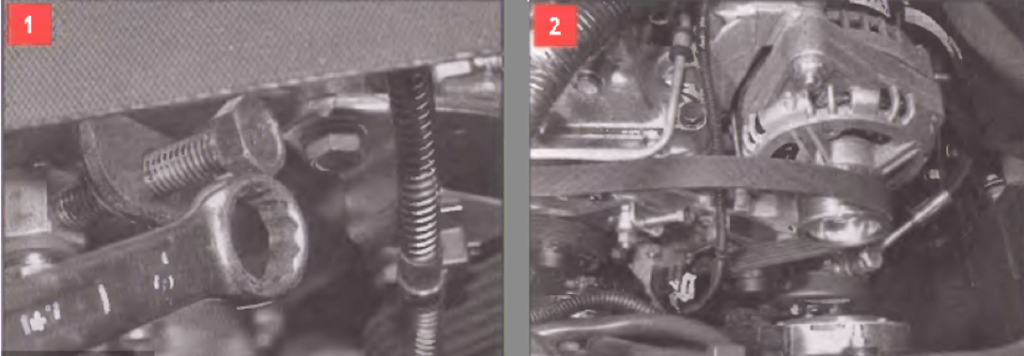 Внимание! Не перетягивайте ремень! Чрезмерное натяжение ремня приводит к преждевременному выходу из строя ремня и подшипников генератора, насоса охлаждающей жидкости и насоса гидроусилителя рулевого управления