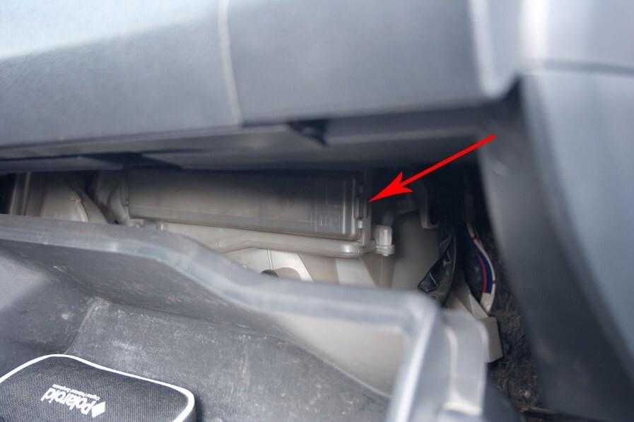 Перед тем как приступить к процедуре, следует освободить ящик бардачка. Именно под ним прячется приспособление, вмещающее в себе ячейку с фильтром.