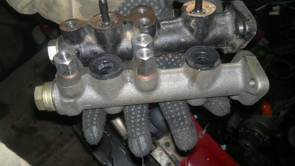 Далее усилие передается на поршни главного цилиндра. Те, перемещаясь, создают давление на жидкость, из-за чего она выдавливается из цилиндра, и по трубопроводам подается на рабочие цилиндры.