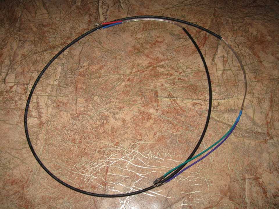 1,2 метра обычного аудио кабеля, на который для перестраховки был надет 1 метр подходящей по диаметру термоусадки, на концы припаяны компьютерные и ISO штыри.