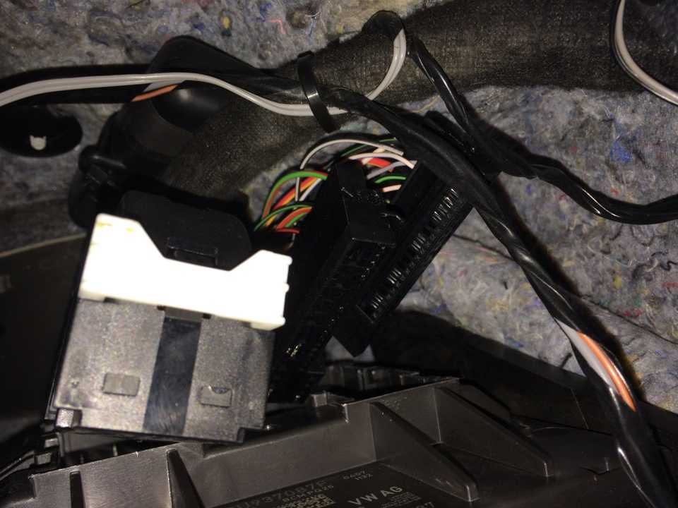 Порядок действий следующий:1) Снимаем клемму с аккумулятора и ждём 10 минут (чтобы избежать остаточного напряжения)2) «Засовываем» голову под торпеду и видим блок ВСМ и 2 разъёма: белый и чёрный, нам нужен белый. Нажимаем на белый фиксатор и тянем на себя чёрный рычажок и аккуратно отсоединяем разъём от блока ВСМ3) Отгибаем фиксаторы с 2 сторон и тянем чёрную часть на себя4) Чёрный разъём состоит из 2 частей, тянем их в противоположные стороны, как по рельсам5) Разъёмы пронумерованы, нас интересуют свободные ячейки под номерами 20 и 21(у кого стоит климат, они вероятней всего заняты) 20 ячейка это «Can H(+)», а 21 ячейка это «Can L(-)».Артикул пинов для блока ВСМ N90764701. Специальный инструмент для обжимки стоит не малых денег, да и не пригодится он мне, поэтому обжимал их плоскогубцами (выделил часть, которой обжимал, красным кружком). Далее вставляем пины иголкой до конца, чтобы они защёлкнулись. После собираем всё в обратной последовательности.6) Тянем витую пару до ISO разъёма(у владельцев highline’ов стоит другой разъём, называющийся Qadlock, для него нужны другие пины). Обжимаем провода пинами N90684505 и вставляем пины в разъём чёрного цвета (куда вставляем провода «Can H(+)» и «Can L(-)» выделил и подписал), вставляем так же до щелчка. Провод использовал сечением 0,5 длина примерно 1,3 вышла (каждого провода).7) Подключаем магнитолу и радуемся данным, выводящимися на магнитолу. А именно: точный остаток места в топливном баке, датчик не пристёгнутого ремня, вольтаж батареи, датчик ручника, датчика омывайки у меня нет, концевик багажника, обороты, скорость, пробег, температура за бортом, ну и конечно же концевики дверей. Магнитола включается при повороте ключа, выключается при его извлечении. Доработка копеечная, а сколько пользы). Ещё пару тонкостей — для включения/выключения магнитолы по каншине необходимо разъединить провод АСС на магнитоле. Также необходимо отключить провод питания камеры заднего вида от провода reverse (если этого не сделать, то при включении задней передачи камера будет включаться, а выключаться будет только после перезагрузки магнитолы). Старался по максимуму описать всё в деталях, если будут вопросы, пишите, буду рад вам помочь.