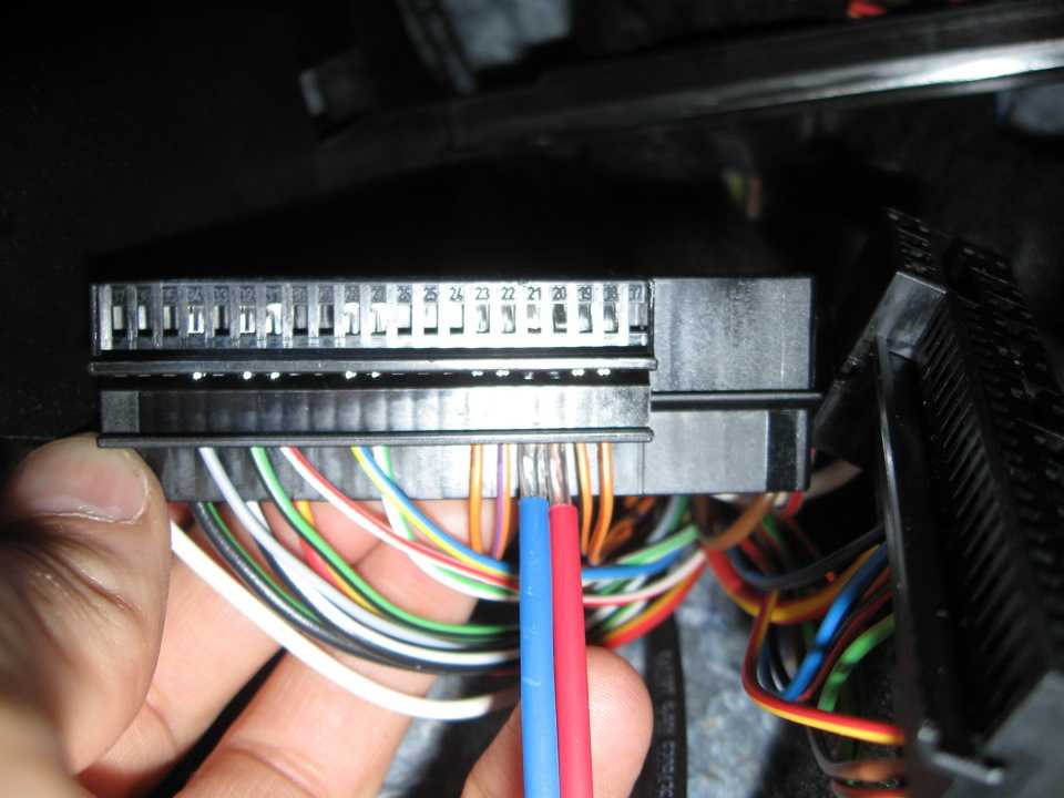Стоит заметить, что для владельцев автомобилей с климат контролем, разъёмы под номерами 20 и 21 будут уже заняты климат контролем. Поэтому подключение необходимо производить к этим проводам климат контроля. В моей ситуации разъёмы 20 и 21 пустые, поэтому просто вставляем пины.