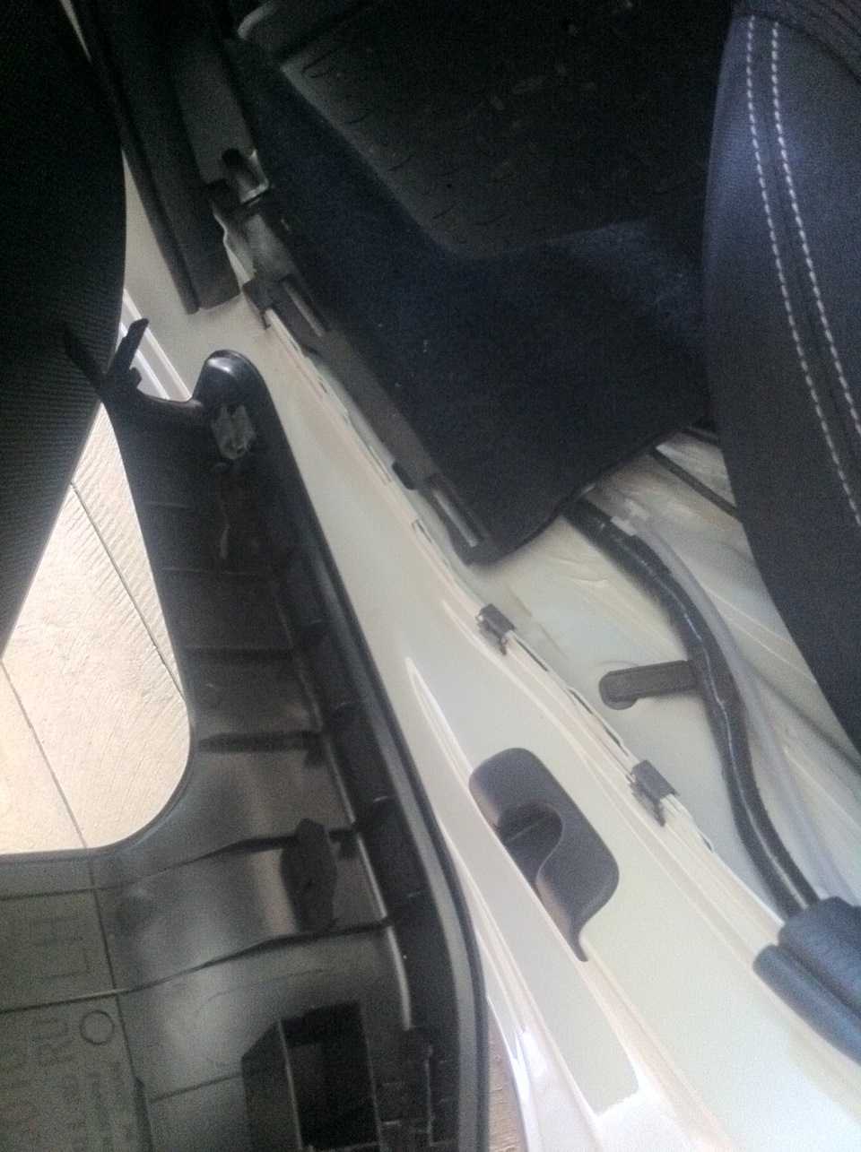 Затем снимаем накладки переднего и заднего порога, держатся они на «крокодильчиках», поэтому просто снимаются руками.