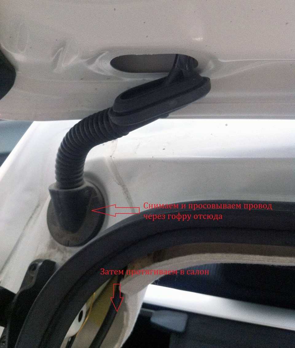 Вытаскиваем штатную проводку, продеваем в отверстие купленный провод: