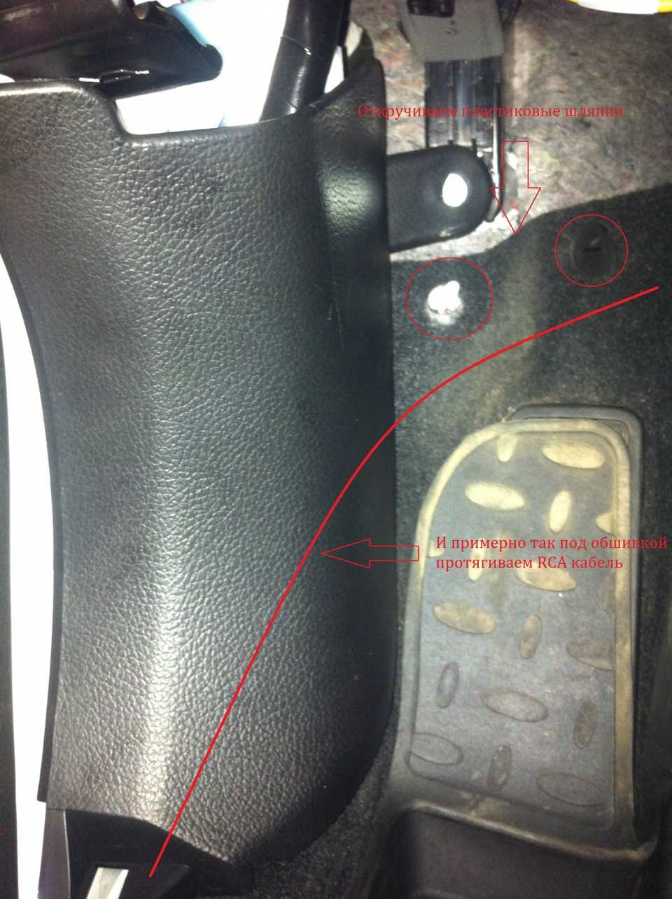 Протягиваем к заднему сиденью, пропускаем под полом: