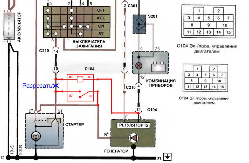 Эта доработка решает 3 проблемы1) Защита от перекрута стартера (например автозапуск или любители подержать ключ подольше)2) Разгрузка контактной группы замка, которая со временем имеет тенденцию подгорать3) Облегчение запуска на разряженной батареи. Все дело в том, что падение напряжения в цепи втягивающего реле значительно, с подгоранием контактов замка проблема усугубляется. Бывает на машинах с возрастом при напряжении АКБ 12В на втягивающее приходит в лучшем случае вольт 9. В результате получаем засаду — включаем стартер, он щелкает, но не крутит. В мороз с утра — проблема усугубляется.