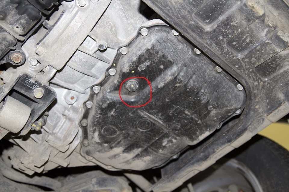 - Откручиваем сливную пробку, полностью сливаем ATF.