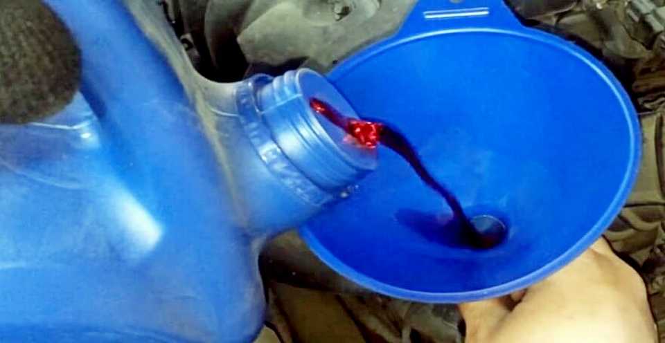 - Выньте щуп и начните заливать новую рабочую жидкость АКПП.