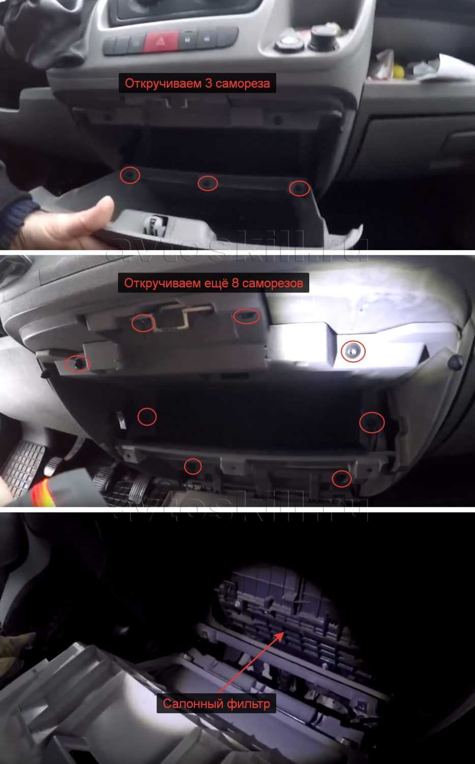 Саморезы, которые крепят бардачок кузова, необходимо открутить