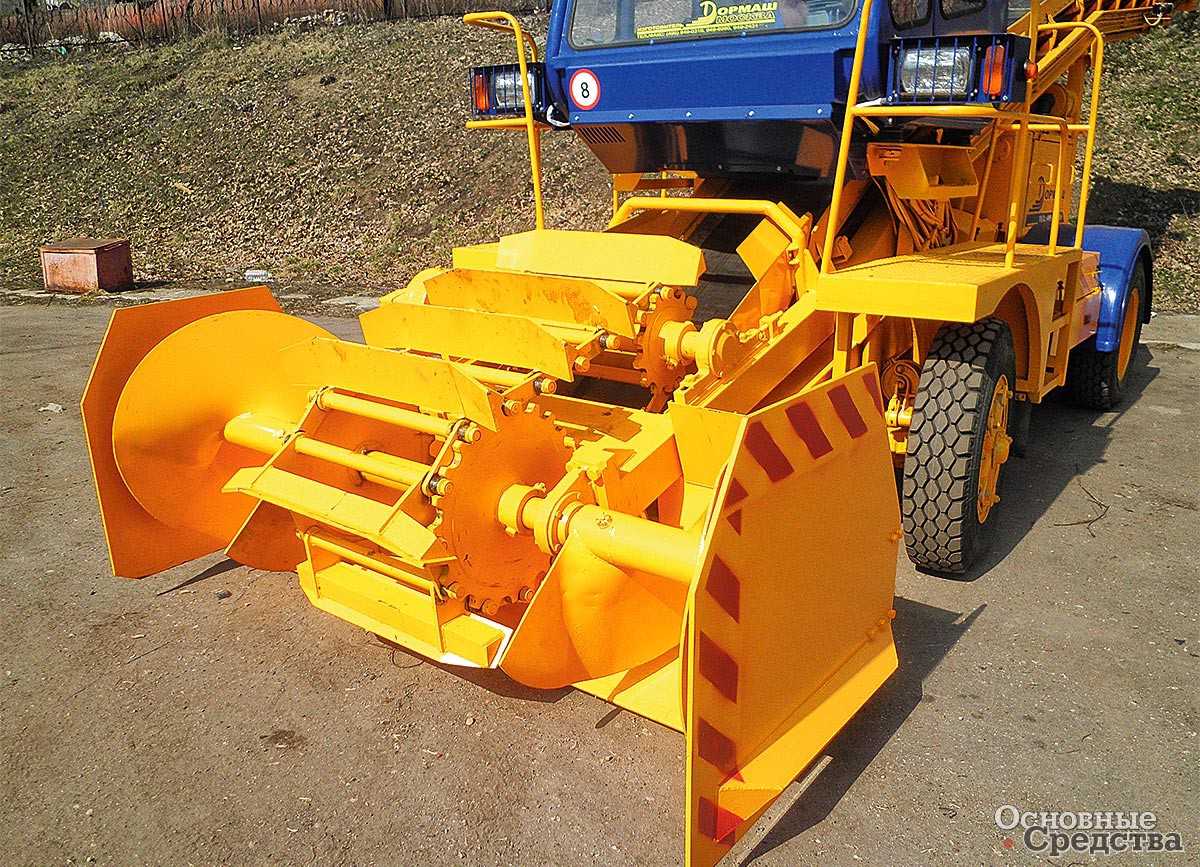 Отвал для увеличения зоны очистки может быть снабжен уширителями. Вместо плуга или отвала для сдвигания снега и его погрузки в автосамосвалы возможна установка погрузочного оборудования.