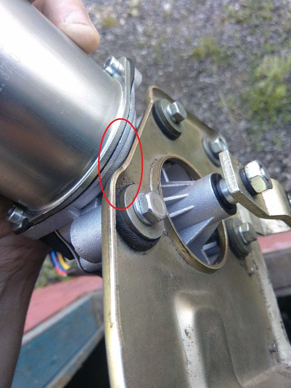После проверки, начал устанавливать новичка на штатный щит мотор-редуктора. Вроде и размер меньше, а после установки краем в щит упирается.
